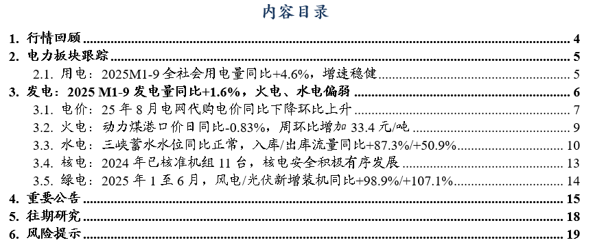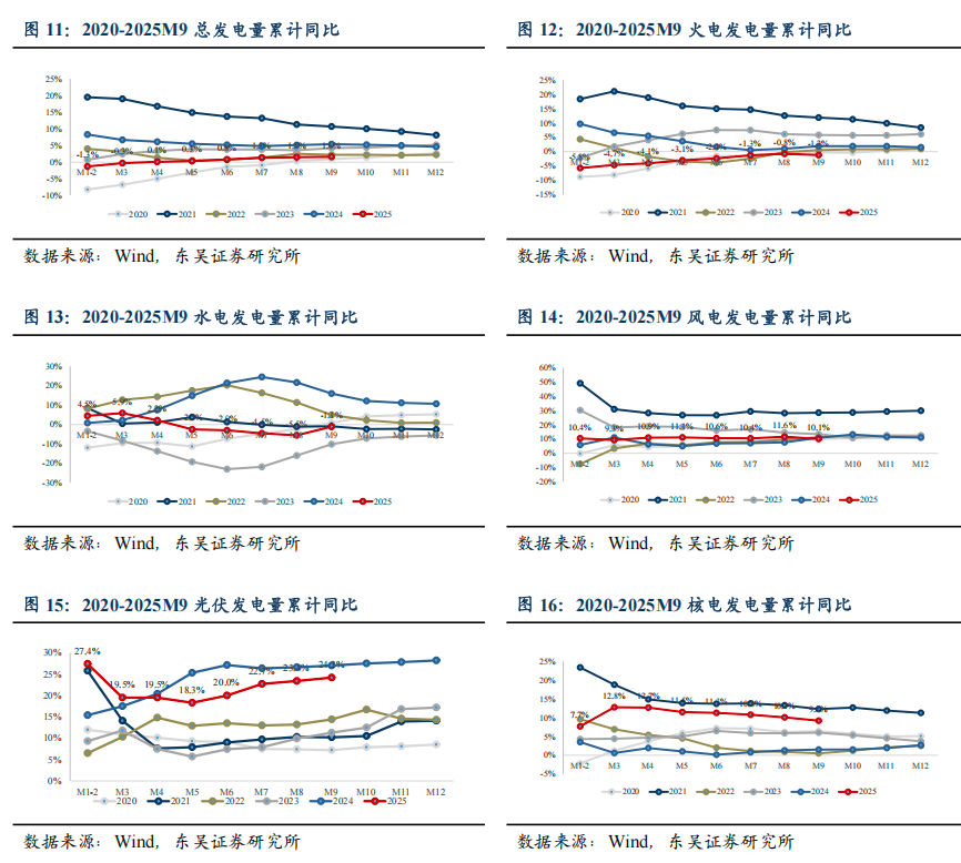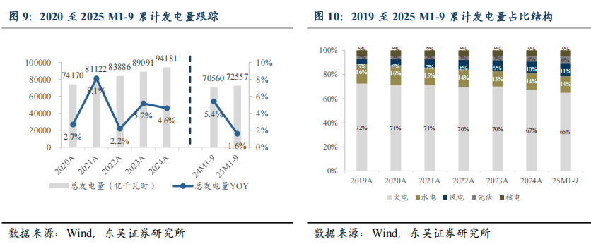 3.发电:2025 M1-9发电量同比+1.6%,火电、水电偏弱