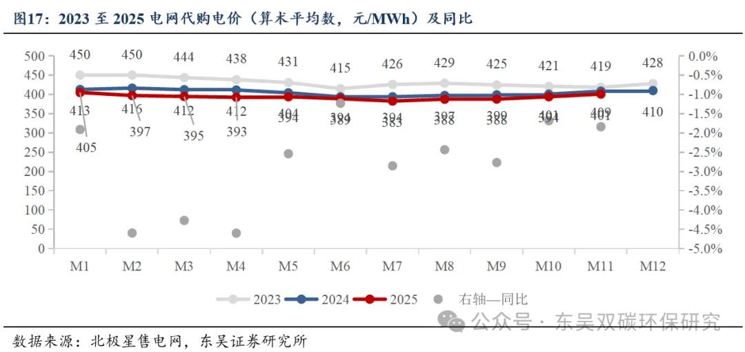 3.1.电价:25年11月电网代购电价同比下降2%、环比上升1.8%