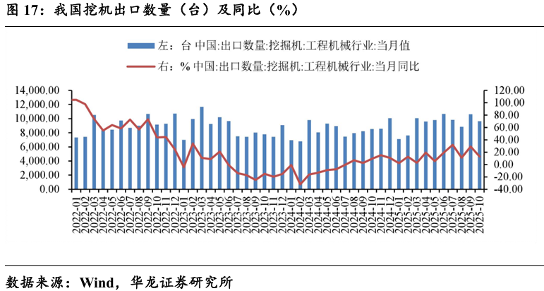2025年10月,我国挖机出口9628台,同比增长12.9%。
