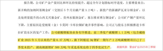 2025年以来,紫金矿业的锂矿,已经逐步进入“量产期”。前三季度,紫金矿业碳酸锂产量达到1.1万吨;旗下阿根廷3Q锂矿一期项目已于三季度末投产;湖南湘源锂矿500万吨/年的采选系统也将于四季度试生产。