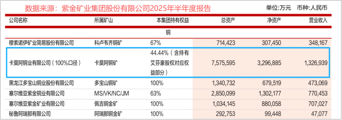 2025年上半年,诺顿金田的矿产金达到3895千克,为公司贡献了约27.93亿元营收;卡莫阿铜矿的总营收也达到了132.69亿元。