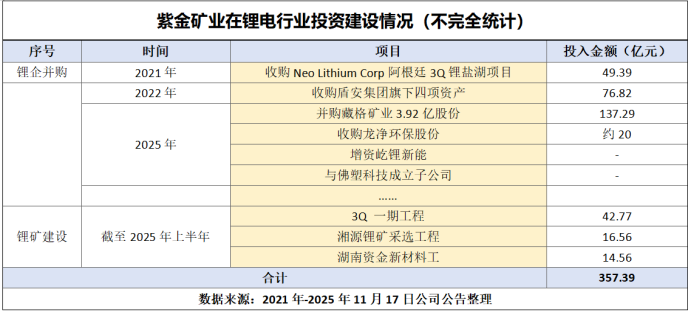 再加上后期项目建设,紫金矿业在锂电板块的累计投入已经达到357.39亿元。