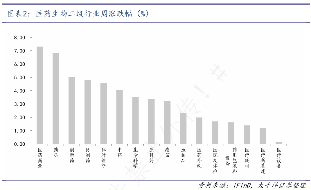 本周医药板块上涨3.29%,跑赢沪深300指数4.37pct。板块内部来看,子板块中医药商业、药店、创新药表现相对较好,医疗设备、医疗新基建、医疗耗材则表现居后。我们建议重视医药板块受市场定价权资金变化所带来的增量影响,尤其是布局创新药及相关产业链标的的投资策略: