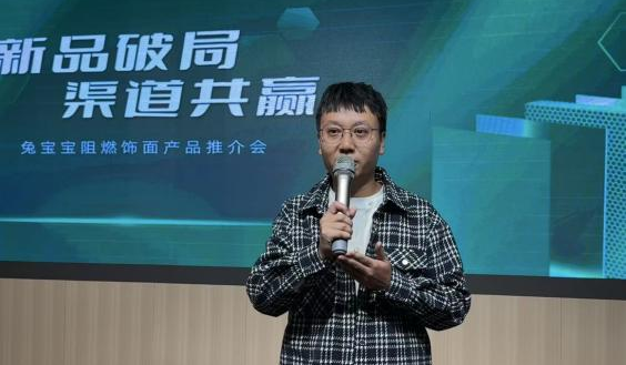 在推介环节,兔宝宝工装运营公司总经理贾焕亮对两款新品一一冰火板和铝蜂窝板一一进行了全方位的深入解读,系统阐述了其核心性能优势与强大的市场竞争力。兔宝宝无机阻燃饰面板凭借A2级防火等级、零甲醛添加的环保特性以及优异的防水防潮性能脱颖而出,提供超过200种花色选择,可高度适配医院、学校、商业综合体等多种场景。其模块化安装方式较传统装修工艺可节省70%的工期,真正实现了高效施工与成本控制,成为工装领域兼具安全、环保与性价比的优选材料。另一款新品铝蜂窝阻燃饰面板则以轻质高强、耐候性强、隔音隔热性能卓越为主要特点,大尺幅设计与灵活定制服务,可完美满足建筑幕墙、室内吊顶等多样化工装需求,其长达20年的超长使用寿命更能显著降低后期运维成本。详实的产品性能数据与丰富的实际应用案例分享,令与会经销商对两款新品的市场前景与合作价值充满了信心。