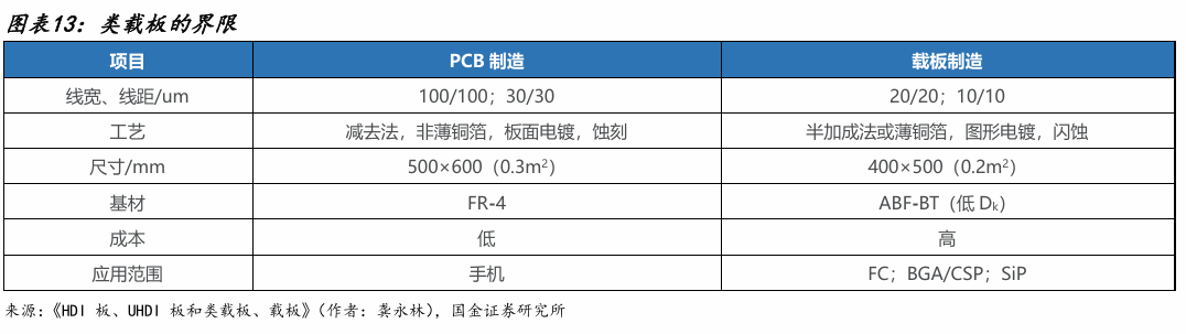 带载体可剥离超薄铜箔,具有厚度极薄、表面轮廓极低、载体层和可剥离层之间的剥离力稳定可控等特性,是制备芯片封装基板、HDI 板的必需基材。目前IC载板、类载板的线宽线距已细至10/10-40/40um,传统减成法制程工艺无法制备,主要使用mSAP(半加成工艺),而mSAP必须使用载体铜箔。SLP拉动载体铜箔需求。SLP类载板,是指具有接近于IC载板特征尺寸的PCB,主要特征是线宽和线距(L/S)尺寸界于常规PCB和IC载板之间,传统PCB以及HDI板的线宽和线距尺寸大于30/30 um,而IC载板的线宽和线距通常小至15/15 um。SLP制造工艺采用mSAP,mSAP从薄的层压铜箔(1.5-5.0um)开始,以薄铜为种子层、进行图形电镀与闪蚀。根据Global Technology Research数据,SLP应用领域包括:①智能手机,2017年iPhone要求PCB密度类似于封装载板,产生SLP需求、带动mSAP工艺发展。2018 年初,三星Galaxy手机也采用SLP设计;②今年起,800G/1.6T光模块制造商也开始采用SLP设计。