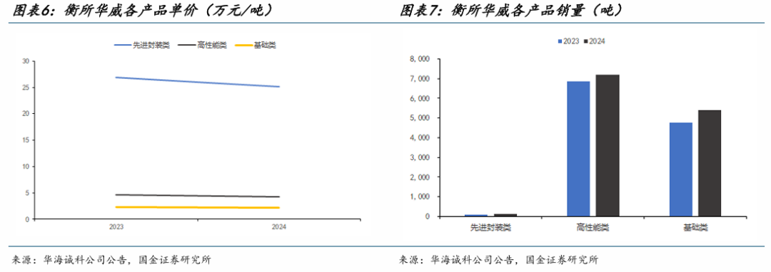 随着国内封测向先进封装迭代,环氧塑封料存在产品结构迭代、单位价值量跃升的逻辑。先进封装类环氧塑封料相较传统封装类更高端,应用 FOWLP/FOPLP的环氧塑封料需以颗粒状(GMC)的形态呈现,对环氧塑封料的导热性、吸水率、应力、粘接力、可靠性等性能提出了更高要求。参考华海诚科收购标的衡所华威数据,先进封装EMC单价是高性能EMC的5-6倍、是基础EMC价格的10倍以上。
