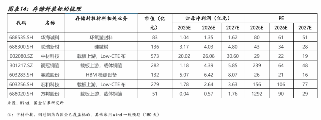 先进封装+存储需求拉动下,我们看好半导体封装材料产业链将迎来量价齐升,例如海力士将其HBM4产品供应给英伟达,比其前代HBM产品单价高出50%以上。本文梳理存储封装材料包括: