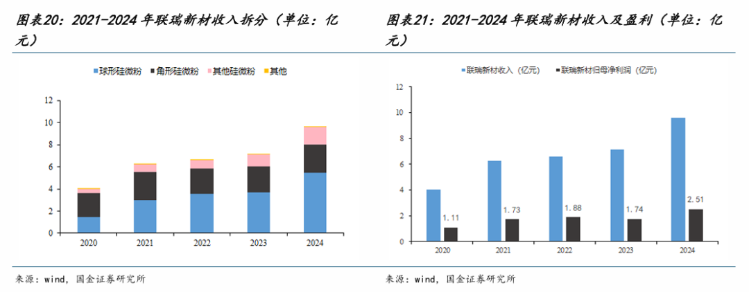 联瑞新材,主营收入主要为硅微粉。2024年公司收入9.60亿元、同比+35%,归母净利2.51亿元、同比+44%。