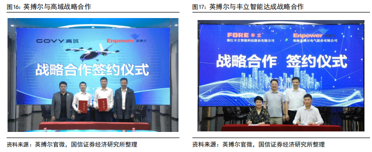 2025年4月8日 英搏尔与广东高域科技有限公司在珠海隆重举行战略合作签约仪式。未来,双方将围绕飞行汽车领域,深度聚焦电机、控制器等关键部件,共同开展适航、生产研究,并建立质量检测与评估体系。同时,双方成立联合实验室,开展上述合作内容的研究与开发,并共同申请重大科研项目。双方搭建前沿技术研发与交流平台,力求在飞行汽车技术创新上实现重大突破,携手开拓低空经济新赛道。