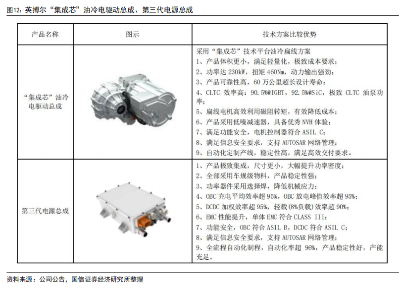 英搏尔深耕新能源领域动力系统二十年,是国内少数同时具备新能源领域电驱系统和电源系统自主研发、生产能力的领军企业,拥有成熟的动力系统解决方案以及丰富的产品类型。创新的“集成芯”技术方案具有高效能、轻量化、高性价比等显著优势。