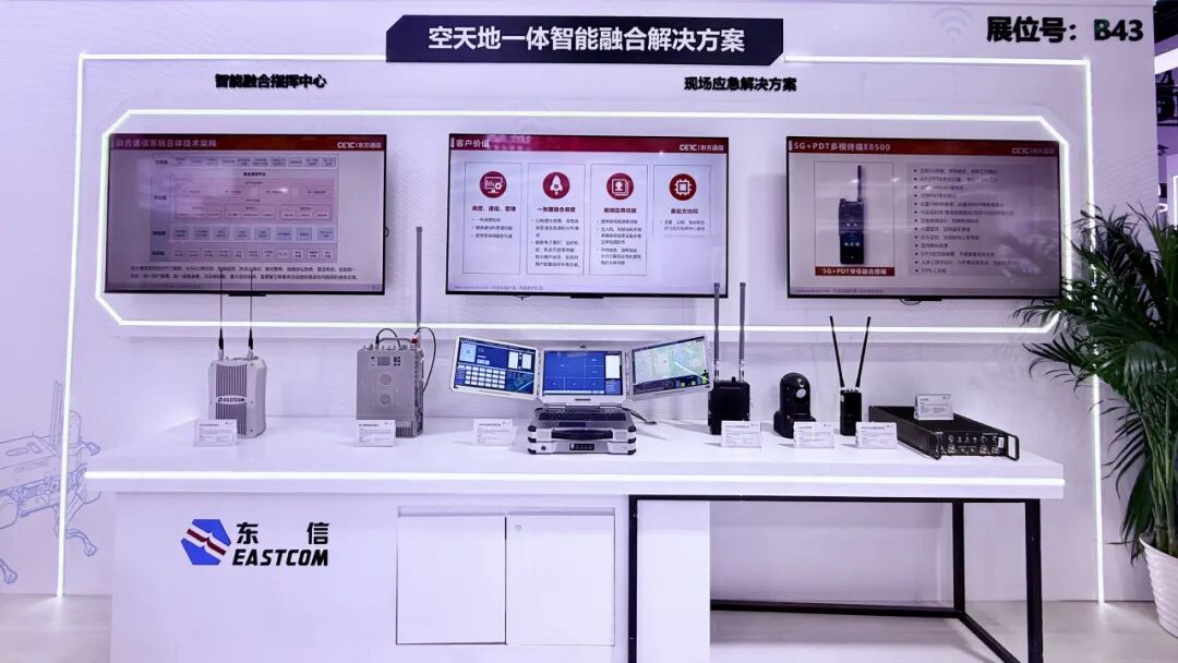 装备矩阵同步亮相,覆盖全场景应急需求。东方通信此次展出了多款面向应急实战的专用通信设备:公专融合多模对讲机、全网通公网对讲机、PDT数字集群对讲机、PDT数字防爆对讲机、PDT快速定位信标机、一体化设计便携型基站、宽窄带自组网设备、5G可机载升空站、一机三屏融合调度中心,可形成“单兵-分队-前指-后指”多层级的系统化装备体系。