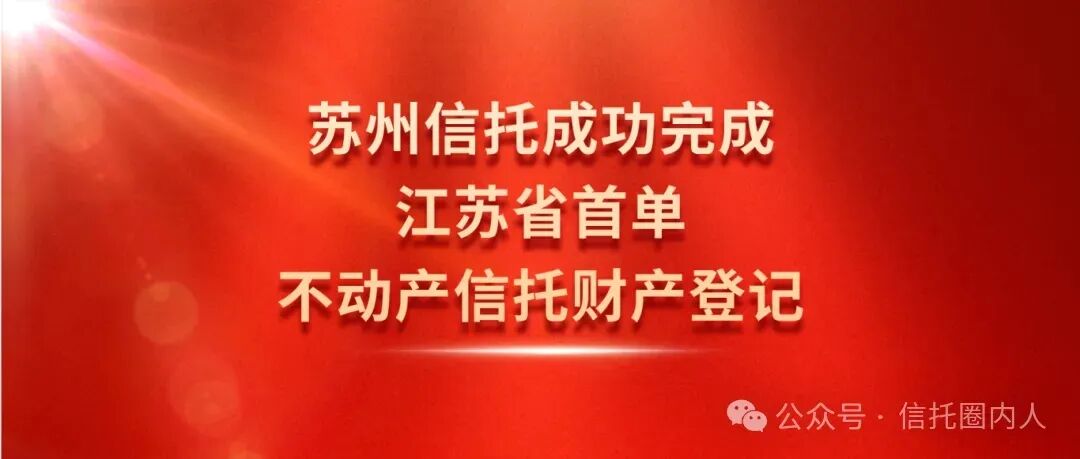 另外,就在几天前11月17日,苏州信托完成江苏省首单不动产信托财产登记。该项目的落地,标志着江苏省在不动产信托财产登记试点领域实现零的突破,也为信托服务民生开辟了新路径。
