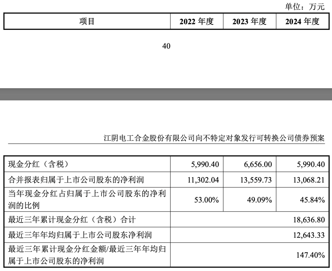 分红方面,电工合金最近三年以现金方式累计分配1.86亿元。