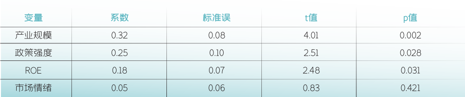 结合上述分析,F检验显著(p<0.001),支持H1和H2的成立。值得注意的是,上市公司盈利能力(ROE)对基金配置具有显著正向影响,验证了H3的调节效应。