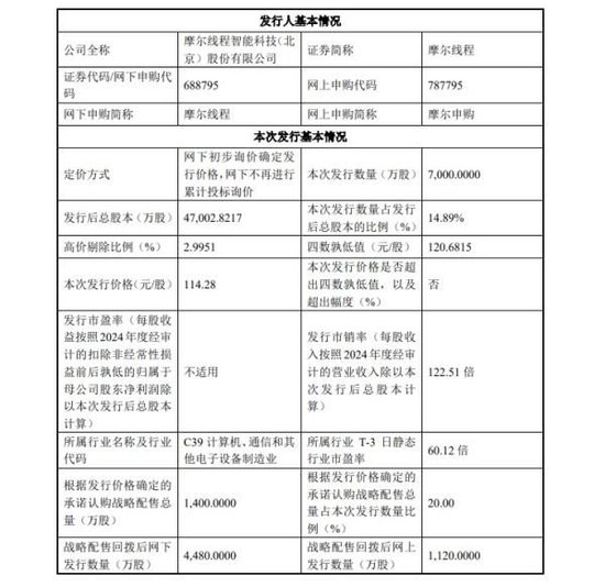 【相关阅读】114.28元 摩尔线程发行价确定!战配名单出炉 网下有效申购倍数超1500倍