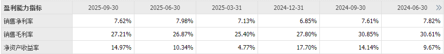 其实在2024年公司将计提的保证类质保费用计入营业成本,不再计入销售费用,所以我们看到2025年公司的毛利率都出现较大的下降,所以净利率更能体现出公司的盈利能力有没有发生变化。