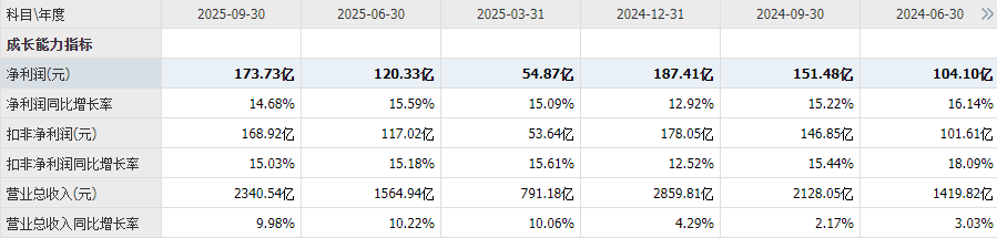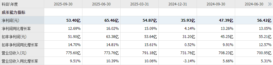 其中第三季度营收775.6亿同比增长9.51%,净利润53.4亿同比增长12.69%,扣非净利润51.9亿同比增长14.7%;