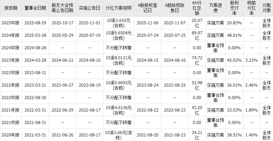近几年公司不断加大分红力度,从2021年分红38.51%,2024年分红45%,今年两次分红,共分红115亿占2024年利润的187.4亿61.4%;