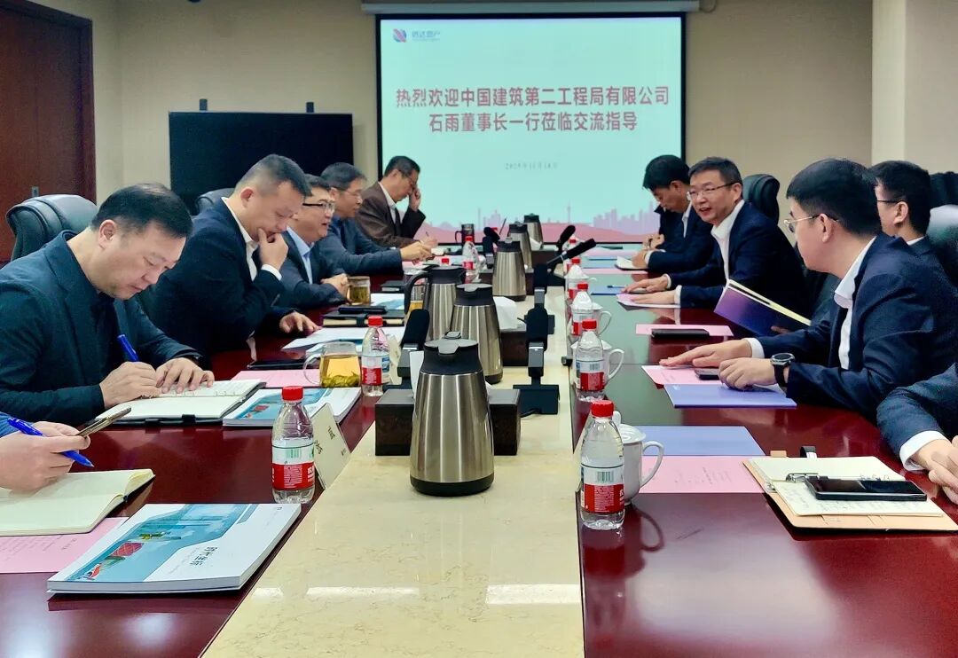 11月18日,公司党委书记、董事长邓立新在北京总部会见中国建筑第二工程局有限公司(下称“中建二局”)党委书记、董事长石雨一行,就推进业务合作开展座谈交流。