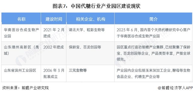 3、中国代糖相关产业园数量较少,山东代糖生产基地优势较大