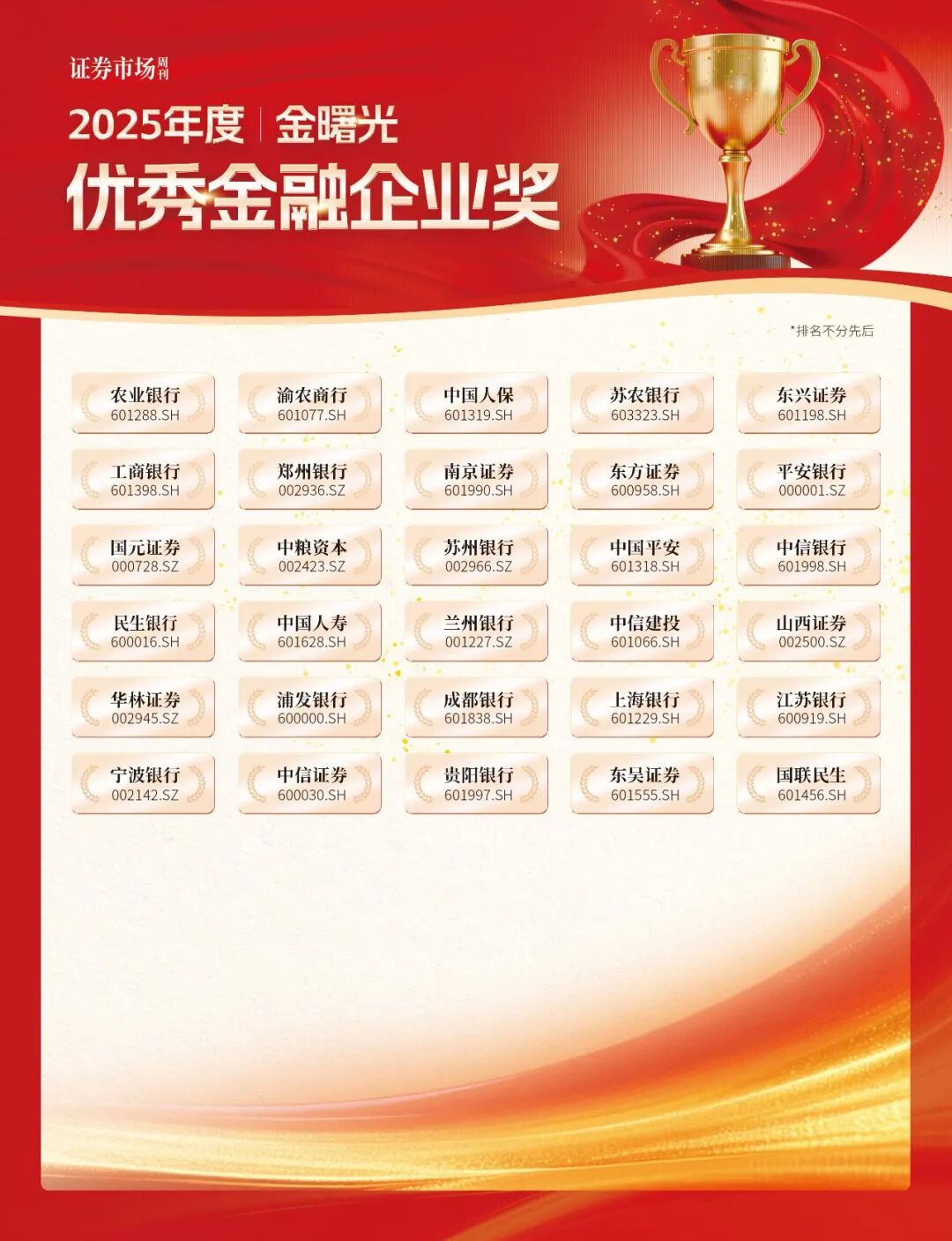 “金曙光优秀金融企业奖”的评选结果充分证明,以农业银行、中国平安等为代表的优秀金融机构,正通过坚守主业、创新服务与严控风险,在服务实体经济中彰显价值,在数字化转型中激发效能,在履行社会责任中传递温度。它们不仅以优异的经营业绩和稳健的市场表现赢得认可,更以审慎的经营理念和持续的金融创新,为产业升级注入动能,为经济稳健前行筑牢根基。