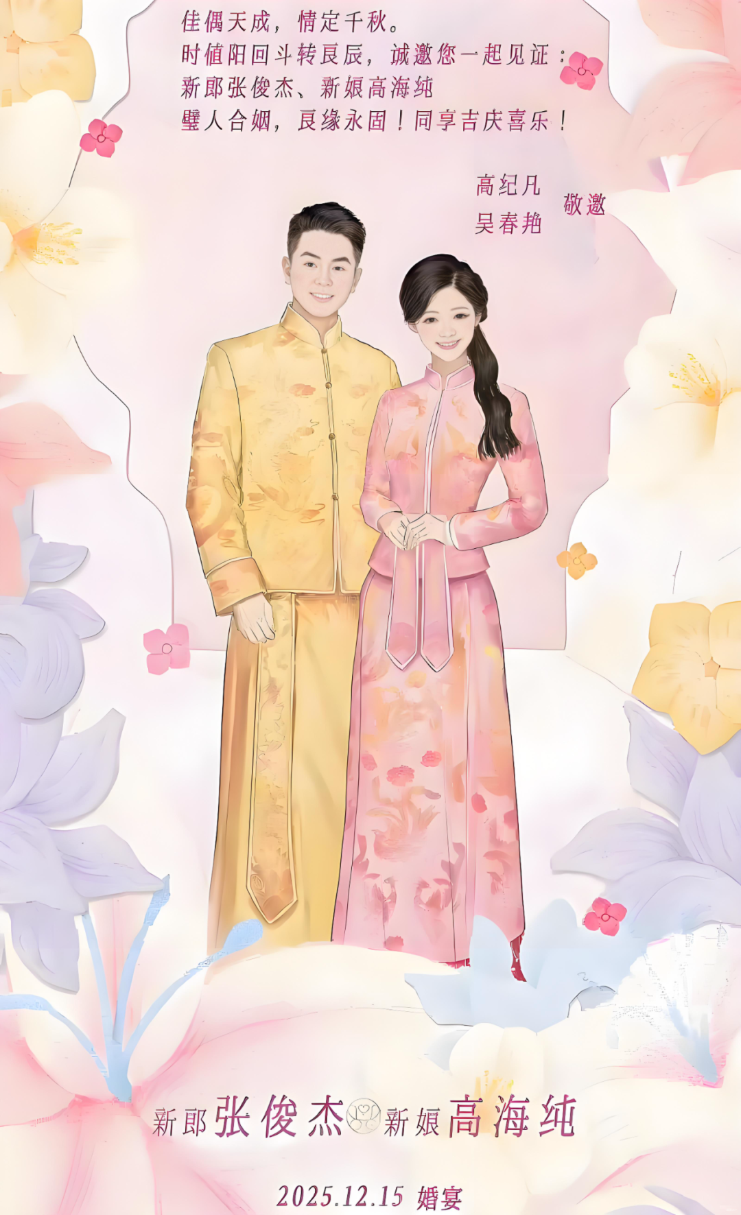 2025年11月,一张来自天合光能创始人高纪凡、吴春艳夫妇的婚礼请柬,在商界掀起不小波澜——请柬上的新人,是天合光能联席董事长高海纯与霸王茶姬创始人张俊杰。