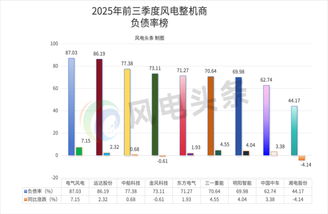 资产负债率偏高是因为整机厂商在海上风电、储能等新业务布局需大量资金,部分企业通过债务融资支持发展,无形中推高了资产负债率。