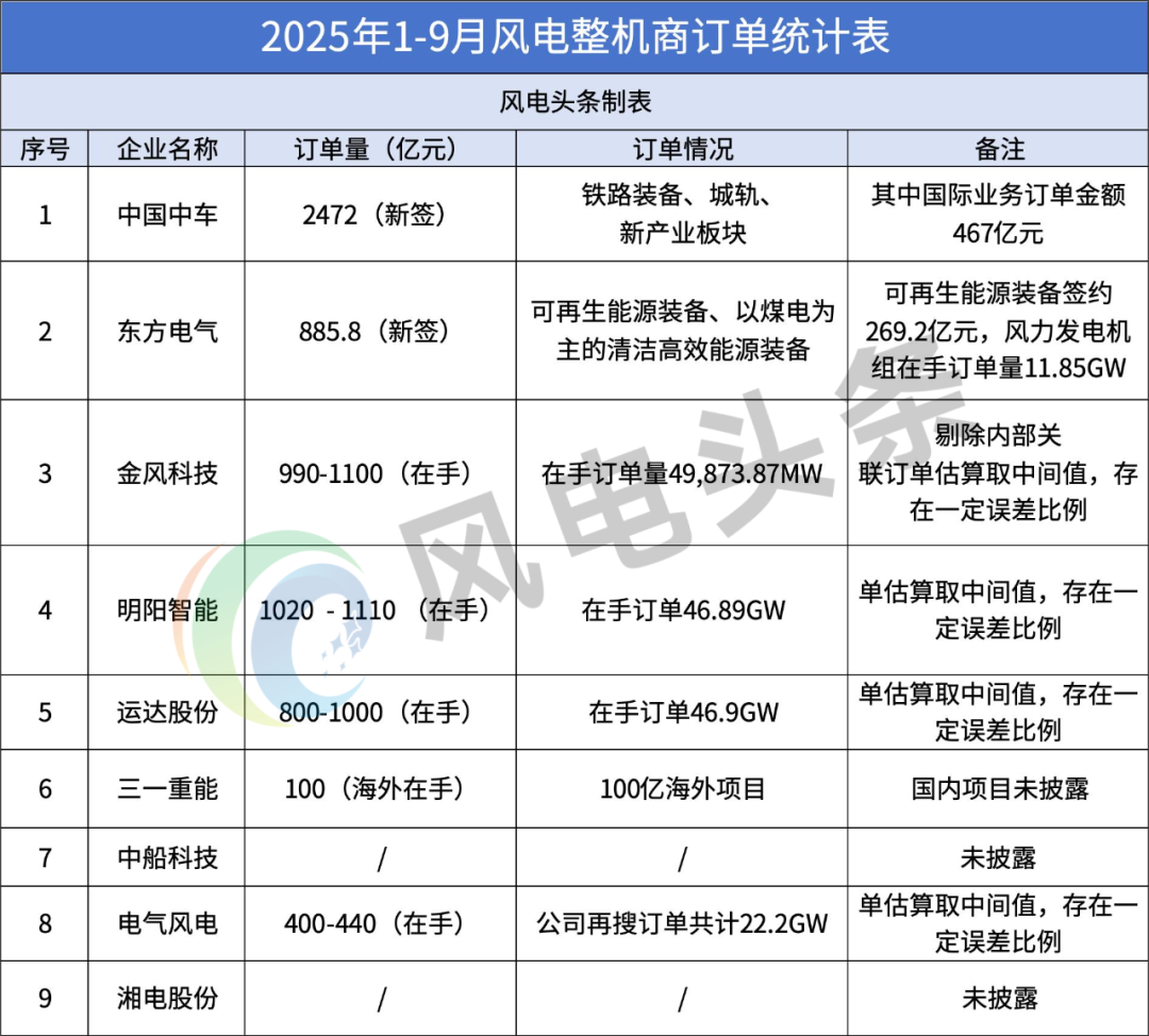 接下来,风电头条将从6大维度深入拆解,带你看清风电整机商的 “前三季度答卷”。