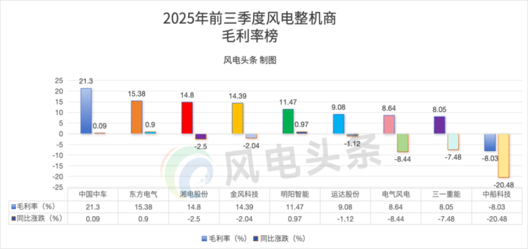 中国中车、东方电气、湘电股份、金风科技、明阳智能5家公司的毛利率保持在10%以上。
