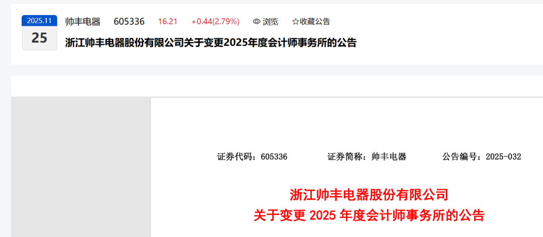 变更会计师事务所的简要原因及前任会计师的异议情况:鉴于安永华明已连续多年为浙江帅丰电器股份有限公司(以下简称 “公司”)提供审计服务,为更好地保证公司审计工作的独立性与客观性,综合考虑公司业务发展、审计工作需求、审计费用报价等情况,根据《国有企业、上市公司选聘会计师事务所管理办法》及公司《会计师事务所选聘制度》等相关规定,经公司审慎评估及友好沟通,拟变更会计师事务所,聘任容诚为公司 2025 年度审计机构,负责公司 2025 年度财务报告审计及内部控制审计工作。公司已就本次变更会计师事务所事项与安永华明进行了沟通,安永华明已知悉本次变更事项并且确认无异议。