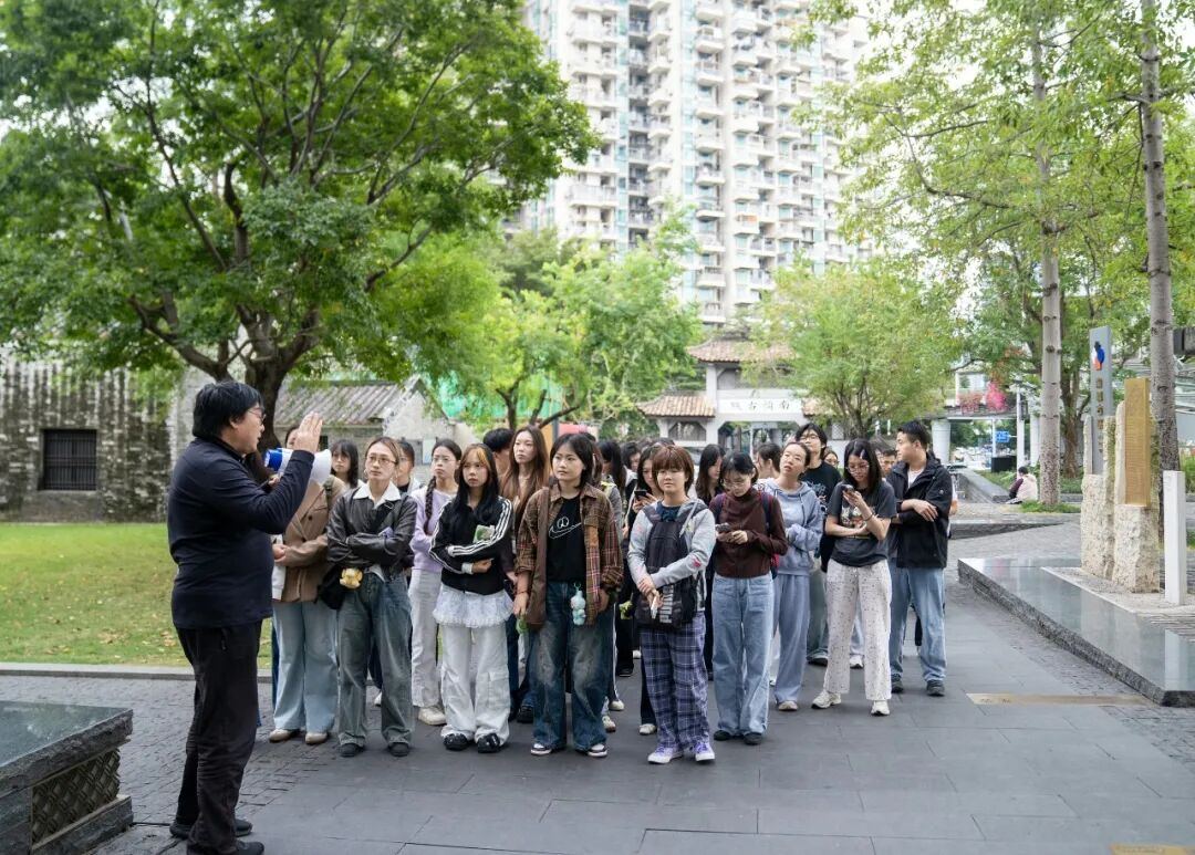 在本次调研课堂上,李宝章先生带领学生们沿着南头古城南门公园、南城门广场、口袋公园等核心景点,以“边走边讲”的沉浸式教学模式,拆解每一处设计细节背后的深层逻辑与独特巧思。