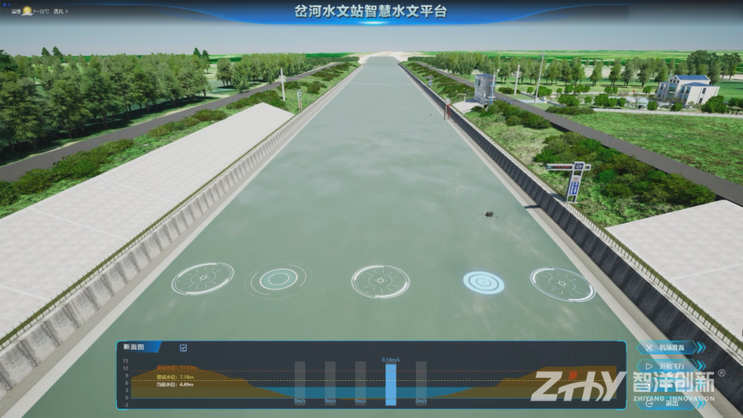 以智慧水文平台为核心支撑,无人机智慧测流与巡河一站式方案深度融合数字孪生、人工智能、无人机等新一代信息技术,聚焦业务场景核心痛点,构建 “航线规划与准备-全自动数据采集-数据传输与处理-智能分析与应用-反馈评估” 全流程闭环体系,实现了无人机 “巡河 + 测流” 一站式常态化运营。
