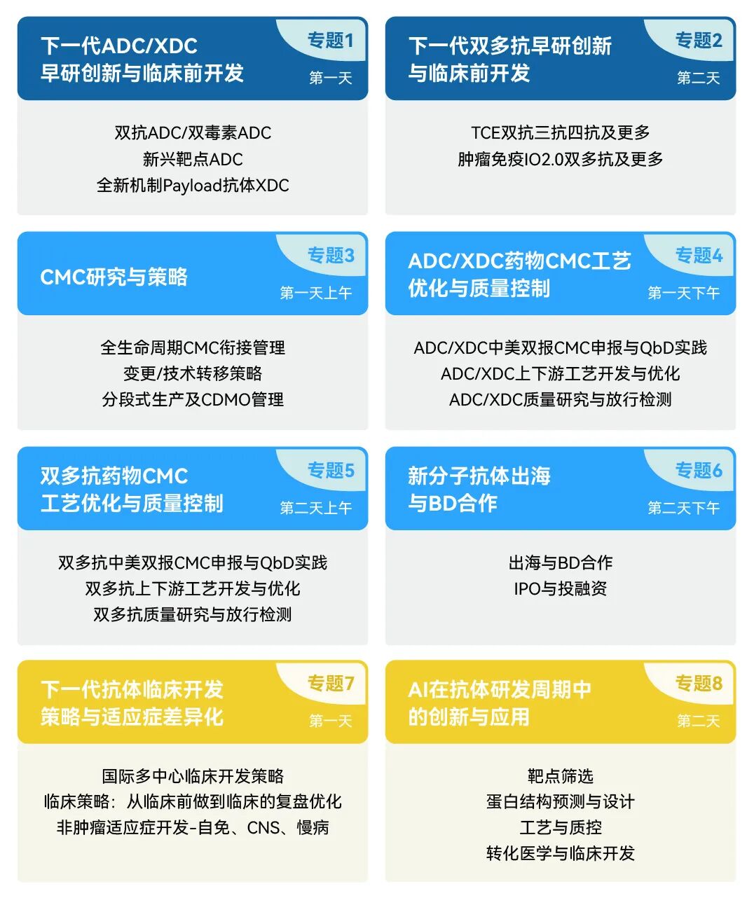 作为BioCon的分支BPI品牌活动--中国抗体药物领域具有重要影响力的行业盛会之一,本届论坛设置八大专题论坛,邀请国内外领先药企、创新生物技术公司、监管专家与投资机构,聚焦下一代抗体药物的全生命周期,围绕ADC/XDC与双多抗早研创新、临床前开发、CMC工艺与质控、临床开发、AI应用、BD出海等关键议题,共同探讨抗体药物在靶点选择、分子设计、工艺优化、临床策略及国际化合作中的前沿进展与挑战。此外,大会前瞻性地将AI与抗体研发结合,为作为中国的软件与IT重镇的成都川渝产业跨界融合提供了思路。