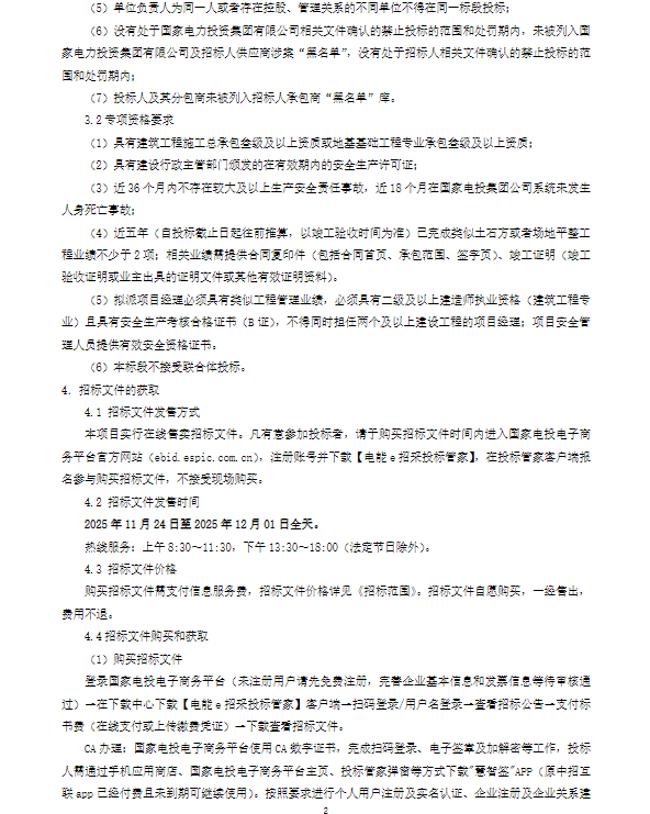 11月24日,中国电力设备信息网国家电投电子商务平台发布山东电力工程咨询院有限公司 2025年第406批招标白城发电公司2×66万千瓦保供煤电项目四通一平工程场地平整工程招标公告,详情如下: