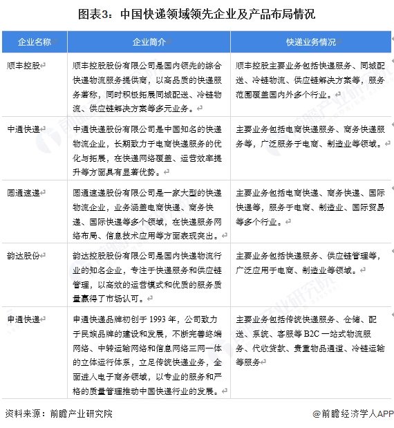 中国快递行业参与企业众多,顺丰控股、中通快递、圆通速递、韵达股份等企业在电商快递、商务快递、同城快递等领域具有较强的竞争力。