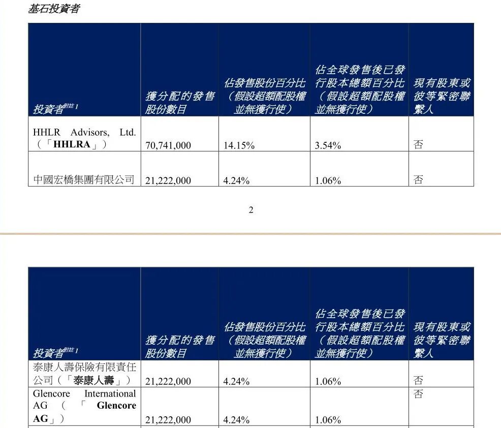 2025年11月24日,创新实业(02788.HK)成功登陆香港联交所主板,发行价10.99港元/股,募资净额53.13亿港元,高瓴资本旗下的HHLR Advisors Ltd、中国宏桥集团、泰康人寿保险公司等18家基石投资者合计认购约26.12亿港元。
