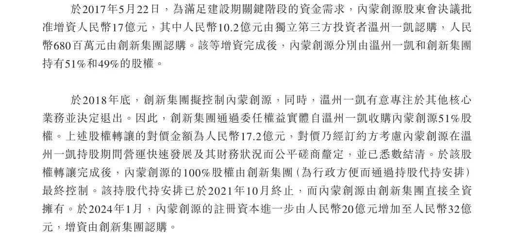 2023年6月至2024年10月,经过一系列重组,创新实业从山东创新集团手中接盘了内蒙古创源金属公司100%股权。