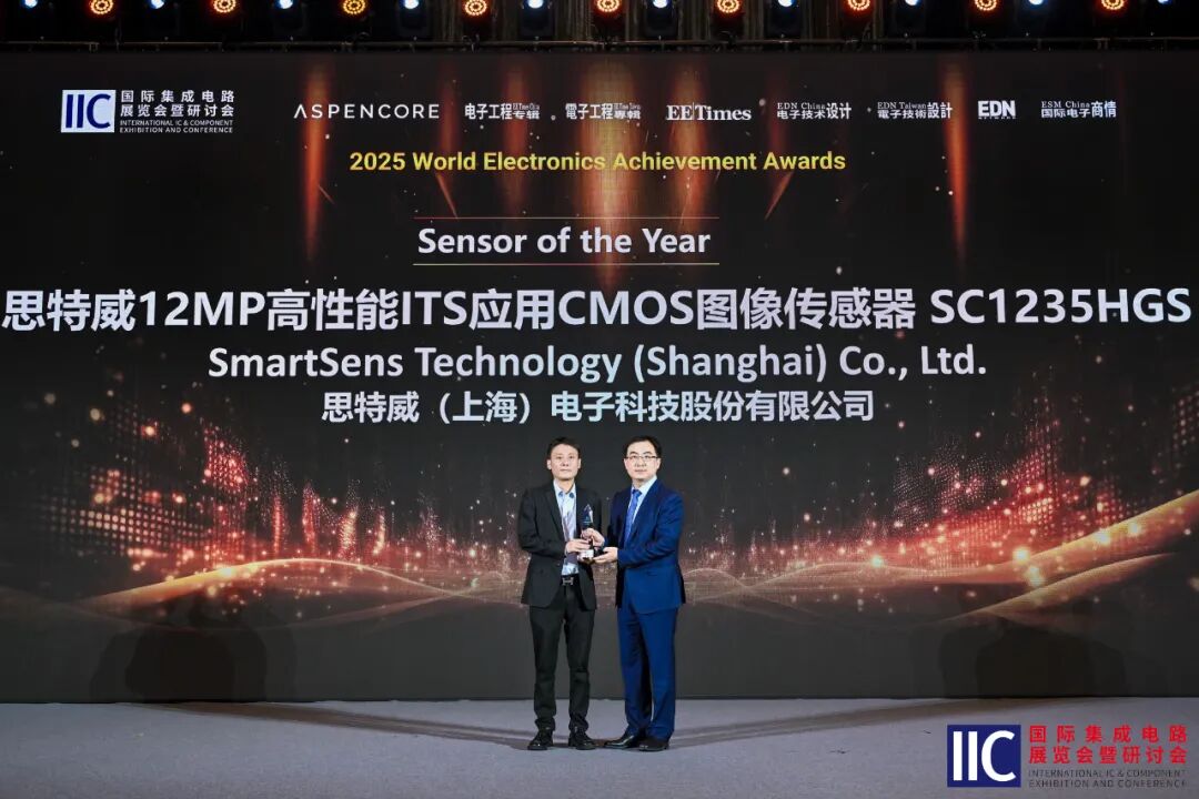 2025年11月25至26日,由全球电子技术领域领先的媒体集团AspenCore主办的国际集成电路展览会暨研讨会(IIC Shenzhen 2025)在深圳隆重举行。思特威高级副总裁金方其先生受邀出席全球CEO峰会并发表精彩演讲。在同期举办的2025年度全球电子成就奖(WEAA)的颁奖典礼上,思特威推出的12MP高性能工业及智能交通ITS应用全局快门图像传感器SC1235HGS荣获“年度传感器产品”奖项。