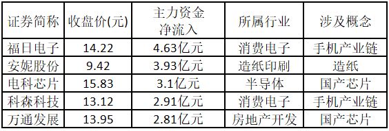 从主力资金来看,今日涨停板个股中,主力资金净流入金额排名前5的个股分别为福日电子、安妮股份、电科芯片、科森科技、万通发展。欢迎大家关注微信公众号“道达号”,其“道达涨停复盘”栏目为大家解读。