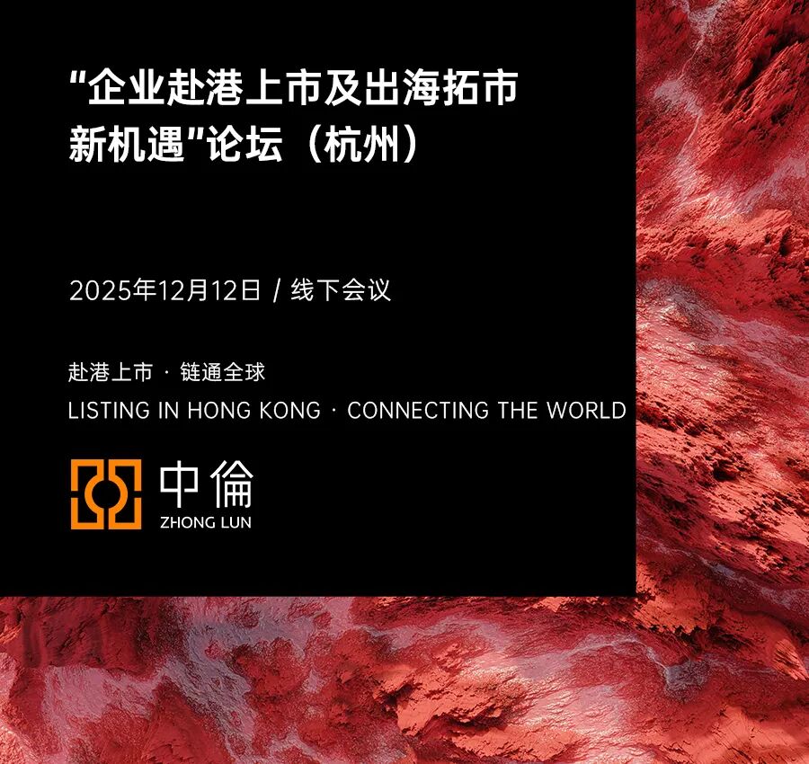 浙江经济,敢为人先;浙商精神,誉满全球。在全球资本格局重塑与产业链重构的时代背景下,如何借助中国香港这一国际金融中心的跳板,实现资本与市场的双重跨越,是志于全球化的浙江企业都必须面对的重大课题。赴港上市,不仅是浙江企业拥抱国际资本的通行证,更是企业治理现代化、品牌国际化的淬炼之路;出海拓市,亦非简单的业务外延,而是整合全球资源、构筑持久核心竞争力的战略必需。如何形成“资本国际化”与“经营全球化”双轮驱动协同共振的强大合力,已成为浙商领袖们必须解答的时代命题。为洞见趋势、把握先机,中伦律师事务所携手多家专业金融机构与协会企业,将于2025年12月12日(星期五)在杭州举办“赴港上市·链通全球——浙江企业赴港上市与出海拓市新机遇论坛”。