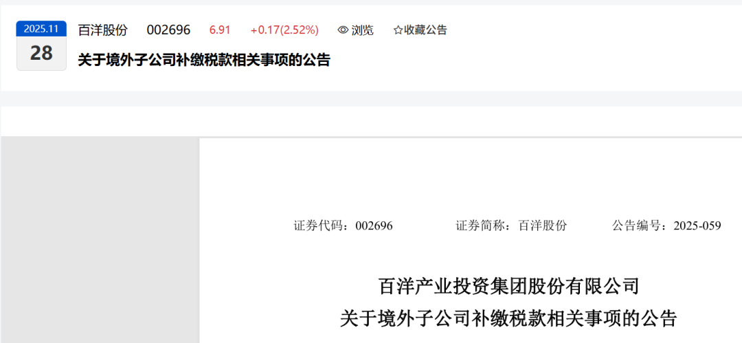 百洋股份的一家国外子公司,因为当地政府突然改变了税收政策,需要补缴一笔税和罚款,总共约321万元。这件事会让公司2025年的利润减少约186万元。