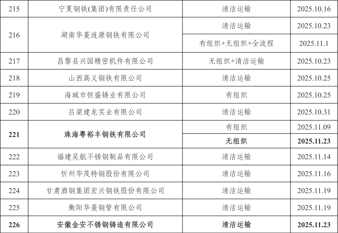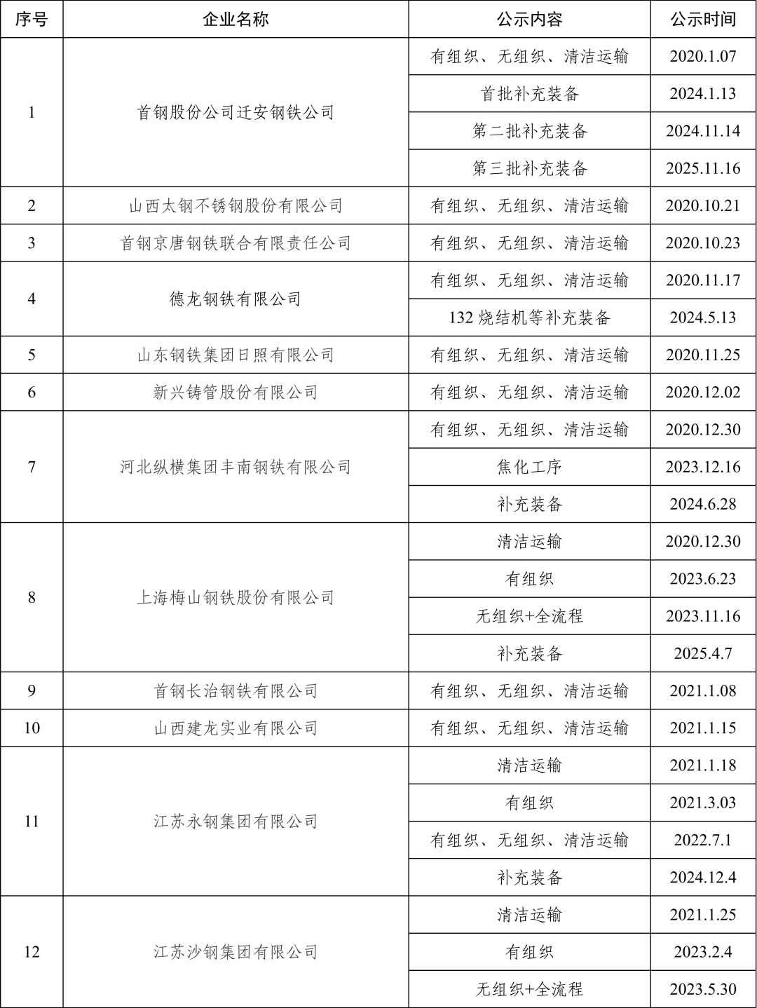 自2020年8月起,中国钢铁工业协会开展了钢铁企业超低排放改造和评估监测进展情况公示工作。截至目前,已有226家企业在钢协网站进行公示。已公示企业名单汇总及各企业公示内容整理如下: