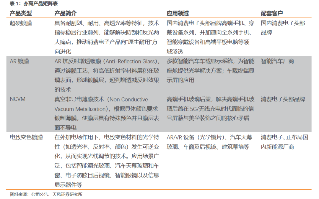 1.2. 亦高光电形成多品类真空镀膜产品矩阵,覆盖消费电子与汽车应用