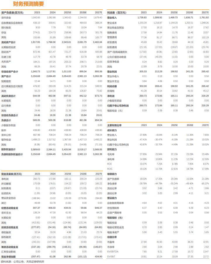 变速器箱体等业务:该板块2023年收入高增至2.5亿元,同比+165%,但2024年回落至2.1亿元。预计2025–2027年收入将在2.1-2.2亿元区间波动,毛利率维持在5%水平,整体盈利能力有限。