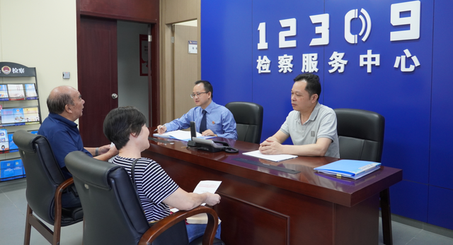 检察干警与侨联工作人员向罗先生夫妇详细了解情况。