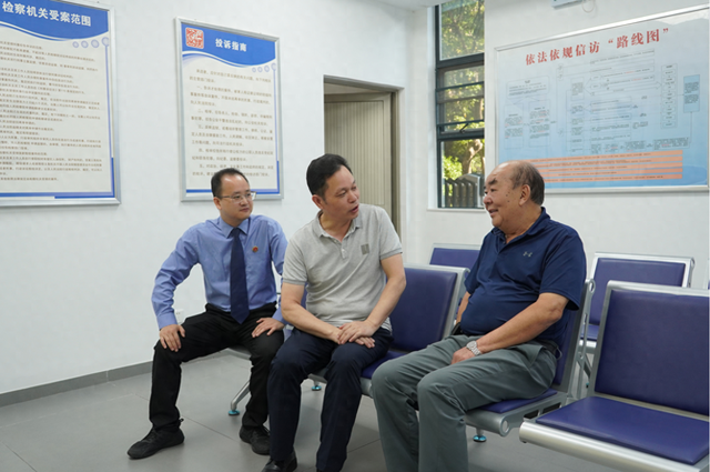 在检侨工作联络站,检察干警与侨联工作人员面对面向罗先生详细了解情况。在梳理材料清单后,侨联工作人员现场向罗先生夫妇讲解了最新的涉侨政策,让这名老华侨的心更加安定。