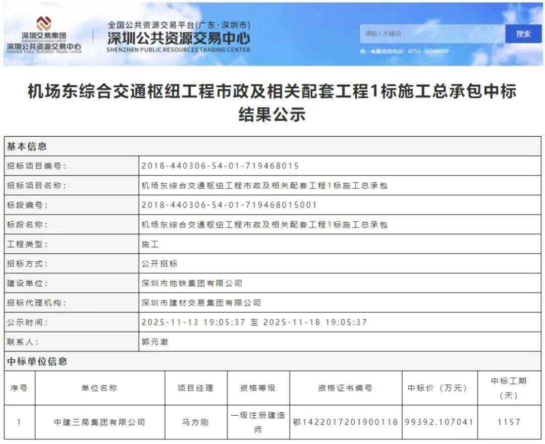 深圳机场东综合交通枢纽工程的竞标场面堪称年度基建领域的 “巅峰对决”。