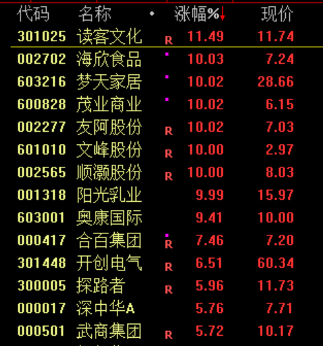 大消费板块探底回升,海欣食品上演“地天板”。