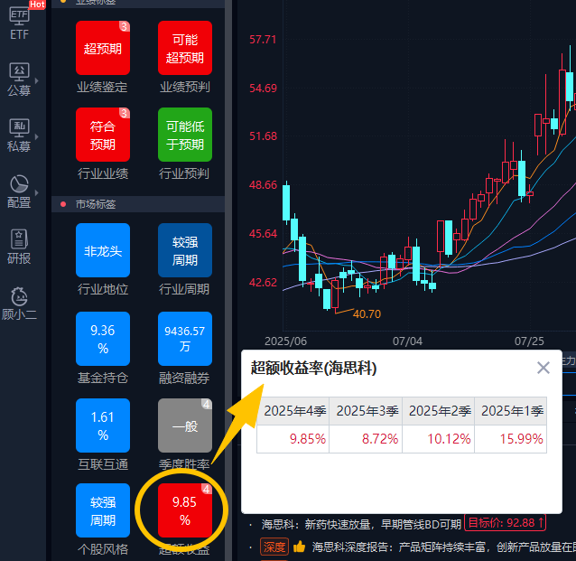 (3)过去4季度超额收益全为正:通过Go-Goal的标签,我们可以清晰看到,该公司过去四个季度超额收益率太能打了!相对于大盘的超额最少也有8.7%!