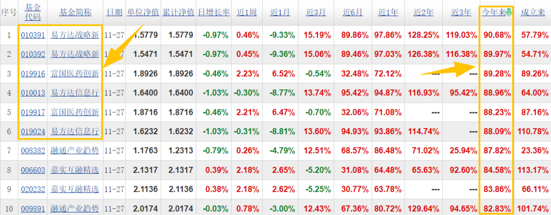 今年以来,易方达旗下的战略新兴产业股票A暂以90.68%的收益率斩获目前的冠军,要知道,去年的股票型公募冠军(摩根士丹利的大摩数字经济混合A)收益率才69.23%,今年整整多了20%+。